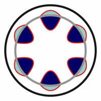 Zur Erinnerung: Querschnitt durch einen primären Spross. Der graue Ring stellt das Kambium dar.