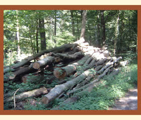 Die Stämme liegen dort nun so lange, bis sie mit LKW abgeholt und in ein Sägewerk gebracht werden. |