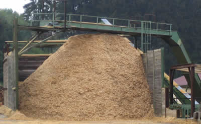 Im Sägewerk werden Späne gesammelt, die zur Spanplattenproduktion verwendet werden |